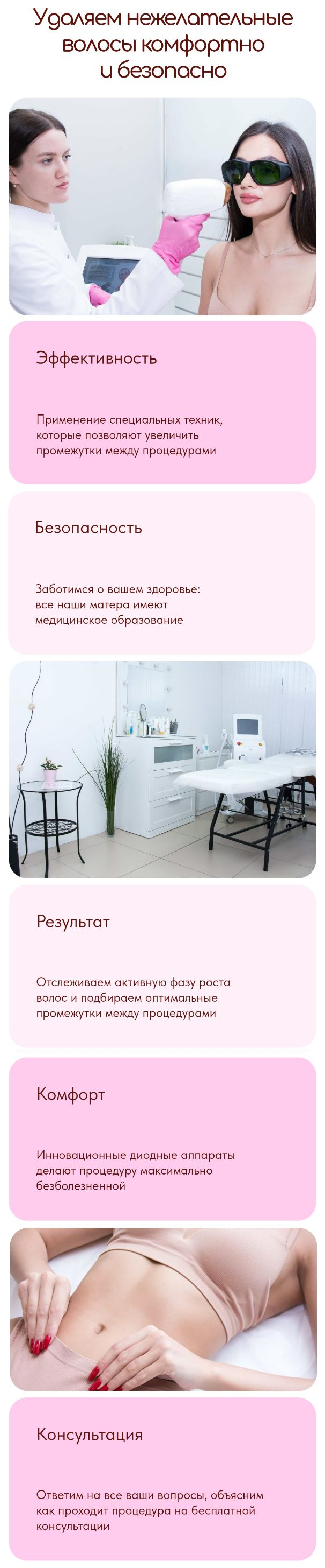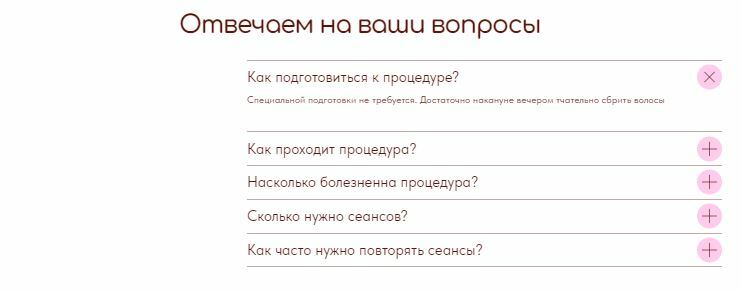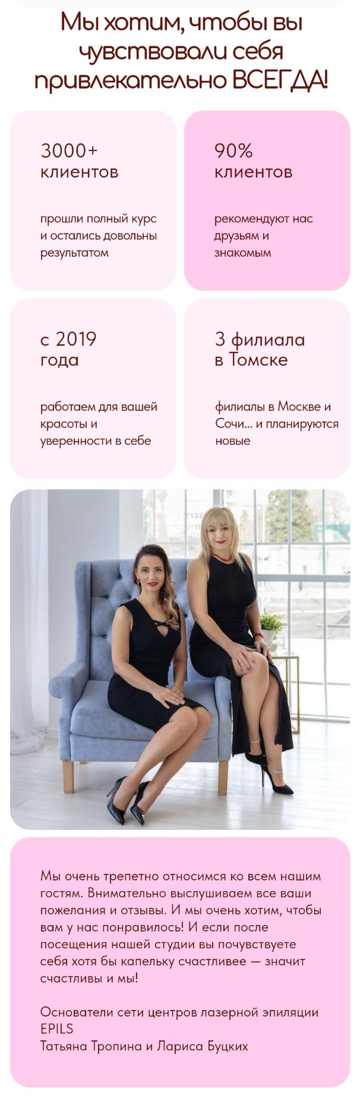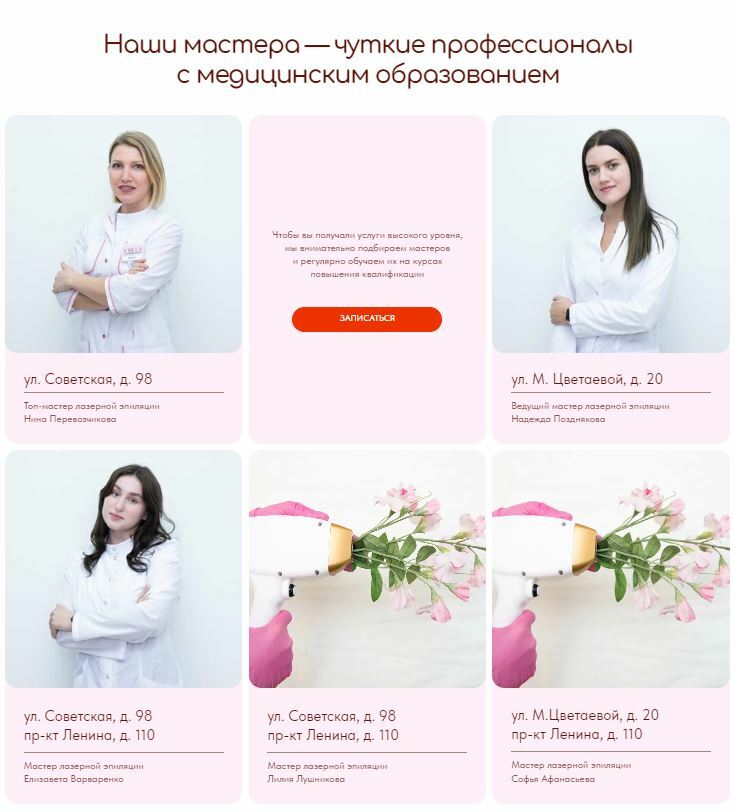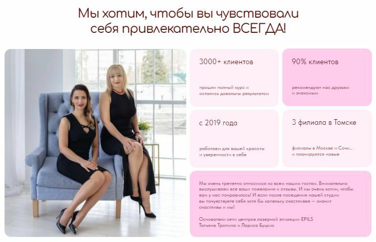 Пообщалась с основателями сети и выяснила, что они очень трепетно относятся к качеству оказываемых услуг. На это сделала упор в заголовках и текстах. Заголовки прописала в формате сторителинга, чтобы уже на этапе их прочтения у пользователя формировалось правильное впечатление о бренде